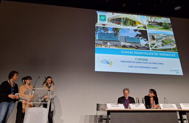 Le 21 novembre, nous sommes allées présenter la prise en charge dans notre service en UPOOG en équipe multidisciplinaire (kinésithérapeute, infirmière et gériatre) lors du congrès des pharmaciens qui se tenait à la cité universitaire à Paris en novembre 2025.